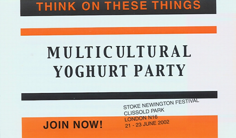 The Multi-Cultural Yoghurt Party (MCYP) was an art project i did with the Turkish artist Dilek Winchester for the Stoke Newington Festival (2002).